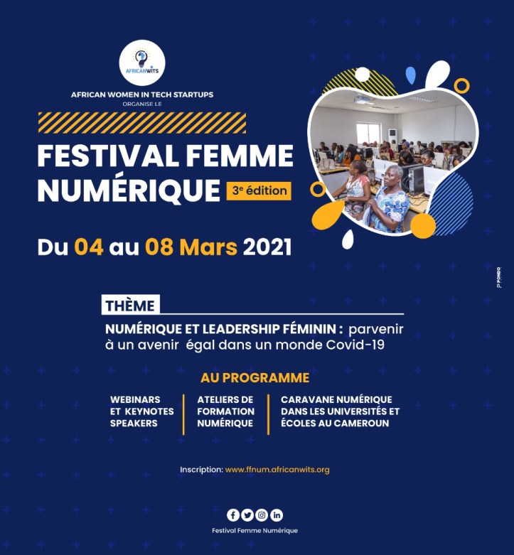 Dans quelques jours plus précisément du 04 au 06 Mars 2021 aura lieu la 3 eme édition du Festival Femme numérique (FFNUM). Et le thème « Numérique et leadership Féminin : parvenir à un avenir égal dans un monde covid-19’’ est plus que d’actualité vue le contexte sanitaire mondial.
